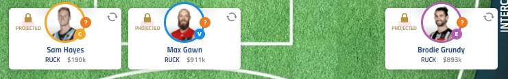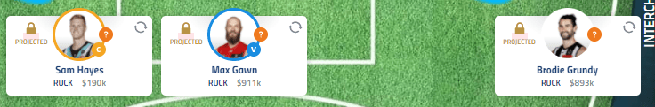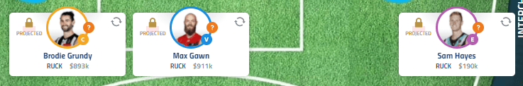 Let’s work through a hypothetical example using my ruck line-up. I currently have the two big dogs, Max Gawn and Brodie Grundy in my side with Port’s Sam Hayes sitting at R3.