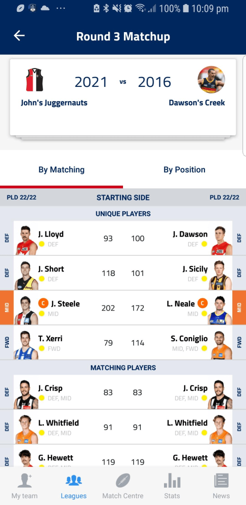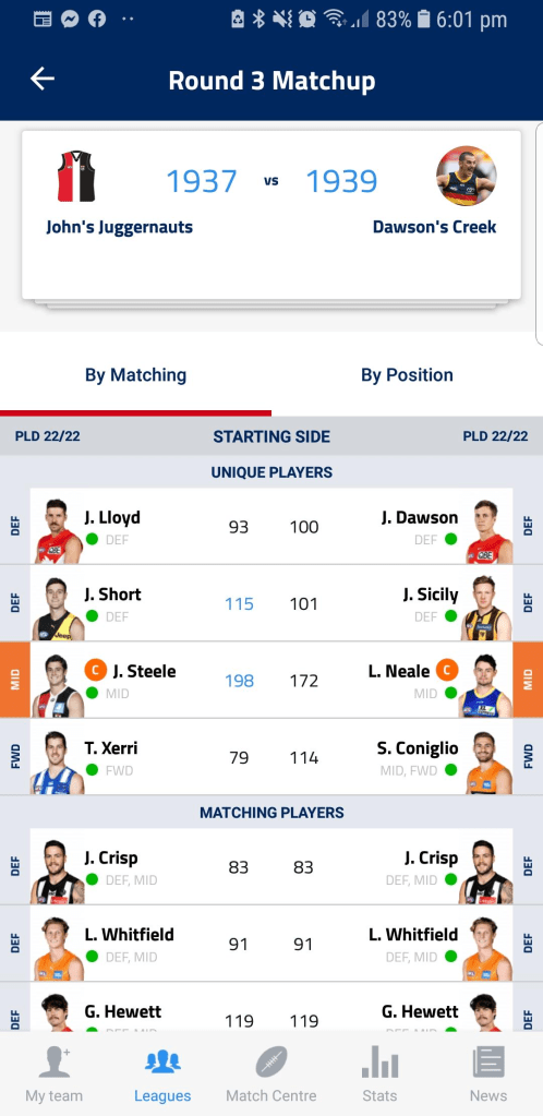 They say that AFL is a game of inches… I’d argue it’s exactly the same in Fantasy. I had 3/3 league wins again this week but it could have been oh so different!