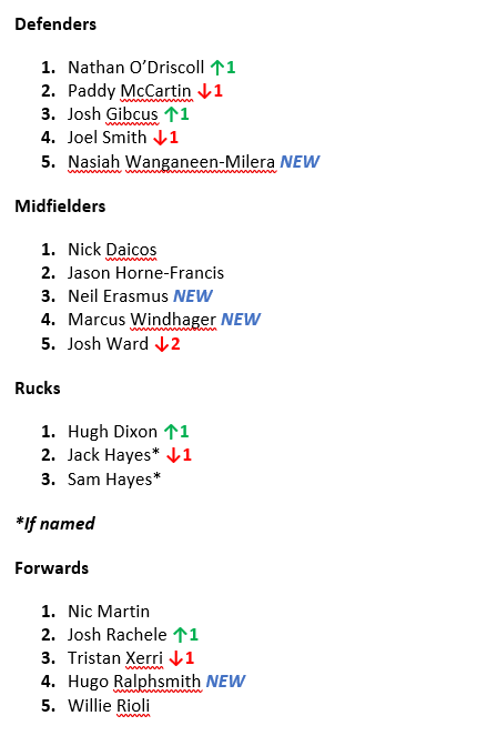 *Named on Sunday/Monday extended squads… I worry about Erasmus and O’Driscoll given Freo’s inclusions!