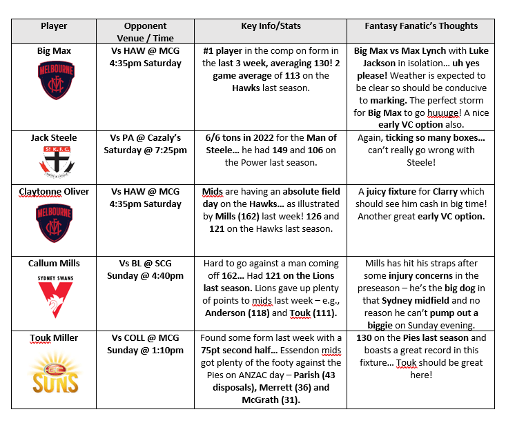 Yup… we’ve got some larger than life bullets to deal with in the ruck department… however, adversity brings out the best in many of us – question is, are you and your squad up for it? Be sure to keep up to date with the final teams over at: https://www.afl.com.au/matches/team-lineups?GameWeeks=7 At least we know about Hewett now as opposed to 10 minutes before the first bounce!