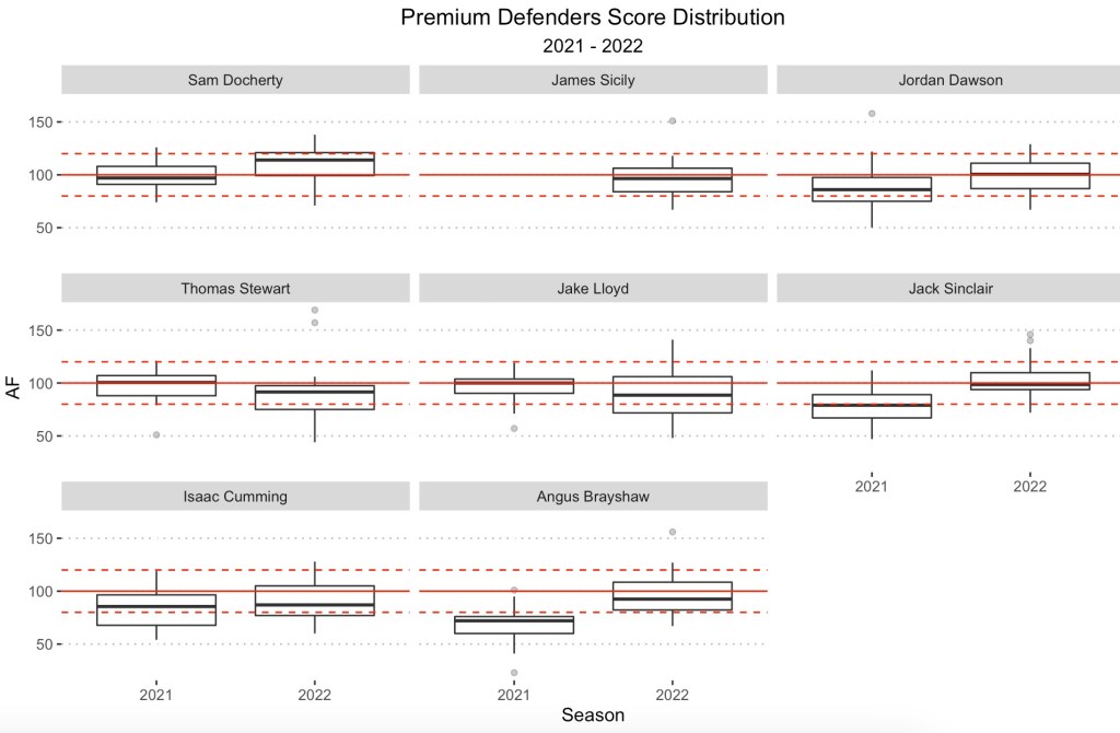 - Based on the data, the most consistent of all of our premo defenders was Jack Sinclair with 50% of his scores falling between 93 and 110! Huge given he had two outliers of 140 and 146, proving he had the ceiling to go with it.